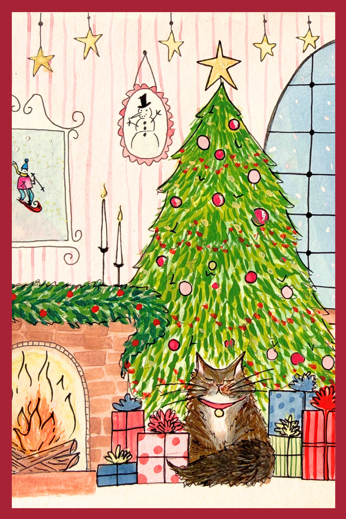 Lilo is an orange cat nestled inside a Christmas tree, inspired by the many tree-climbing cat photos you sent. This physical art print is hand packed and mailed as a one ounce letter, often with a couple tiny surprises. Collect Lilo on her own or as part of the full 12-cat set.